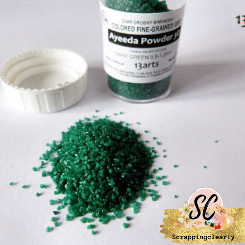 Colored grit, fine-grained. 0.8-1.2mm. Weight: 35gr. Perfect for creating textures, mixing with other mediums including gel medium or modeling paste to create fine-grained paste. It is also great for making decorations of any kind