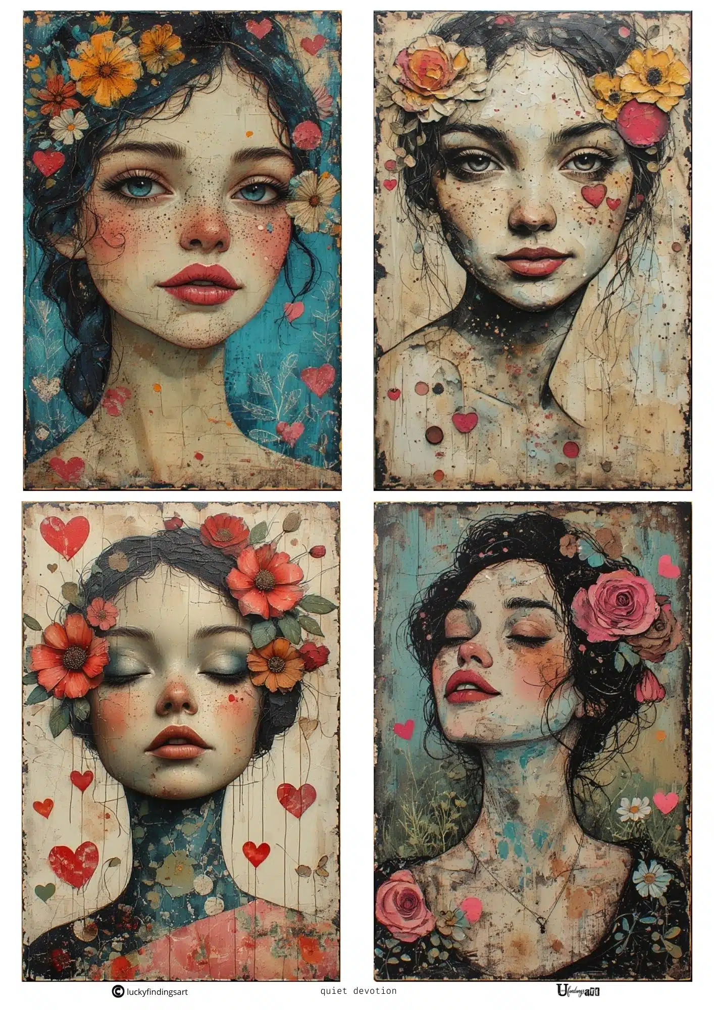 LUCKYfindings imagery sheet – set of 4 individual images designed by Kylie @ Scrappingclearly printed on card paper